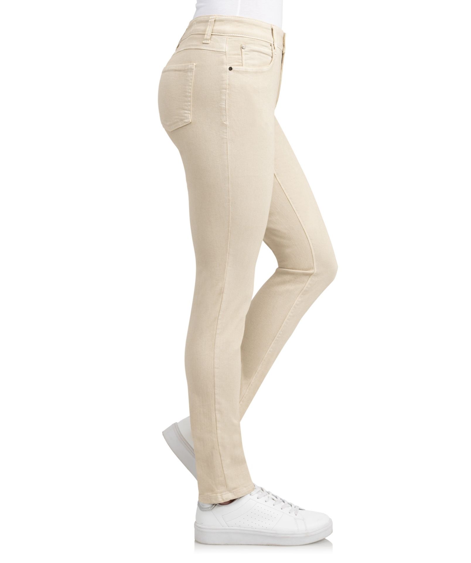 Eine gute Figur machst Du mit der High-Waist Jeans mit schmaler Passform; eine gute Grundlage für alle Deine Styles. Speziell für grosse Frauen ist diese Wonderjeans High-Waist mit einer Innenbeinlänge von 37 Inch. Hier in der Farbe sea salt, was ein naturals beige ist.