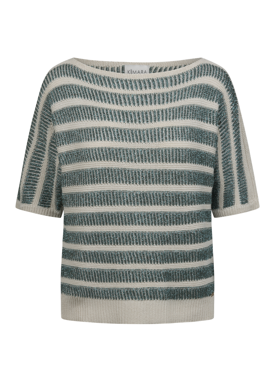 Short-sleeved jumper in a soft fine knit with fashionable details: boat neckline, half sleeves with ribbed pattern, fine waves at the hem, sleeves and neckline - perfect for spring styling!