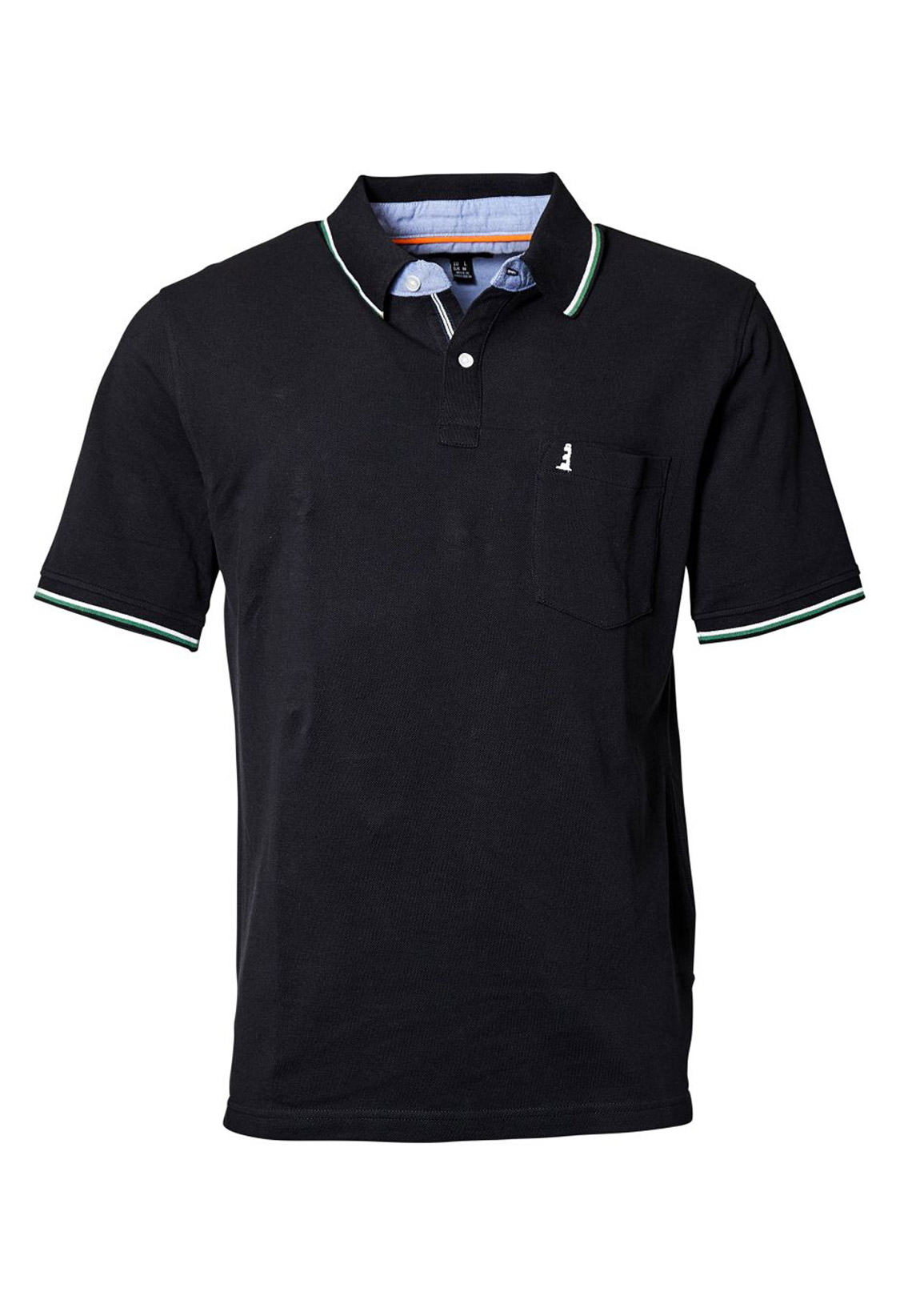 Poloshirt with chest pocket and contrasting stripes on the collar and sleeves, in black, extra long in a slim fit.