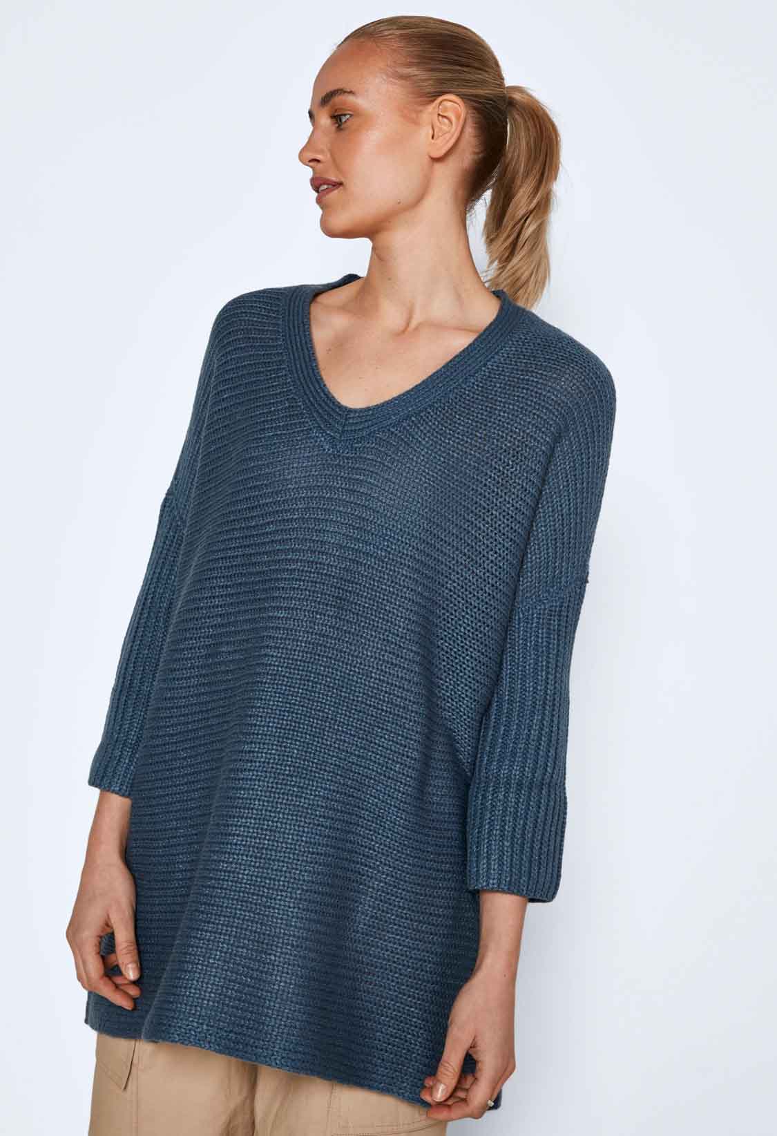 Ce long pull-over en tricot à la coupe oversize est particulièrement beau sur les femmes grandes ! Encolure en V, épaules recouvertes, manches 3/4 avec détail de revers sur les manches, le tout dans un tricot à la mode, c'est le pull idéal pour combiner avec les jeans et les leggings.