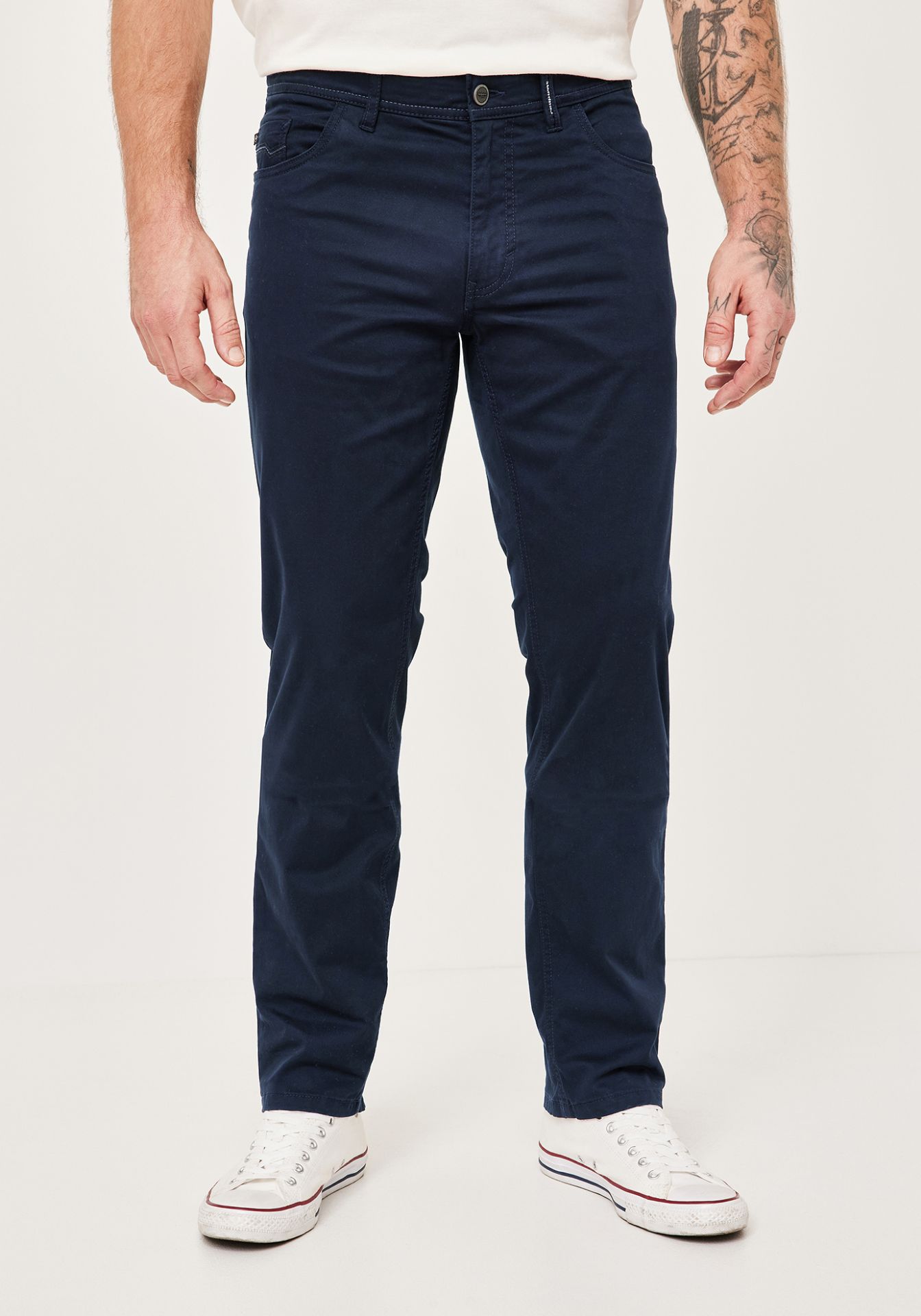 Coupe regular fit Pantalon 5 poches Ceinture élastique Confort optimal Finitions haut de gamme Confortable et extra long avec une longueur de jambe intérieure de 38 cm.